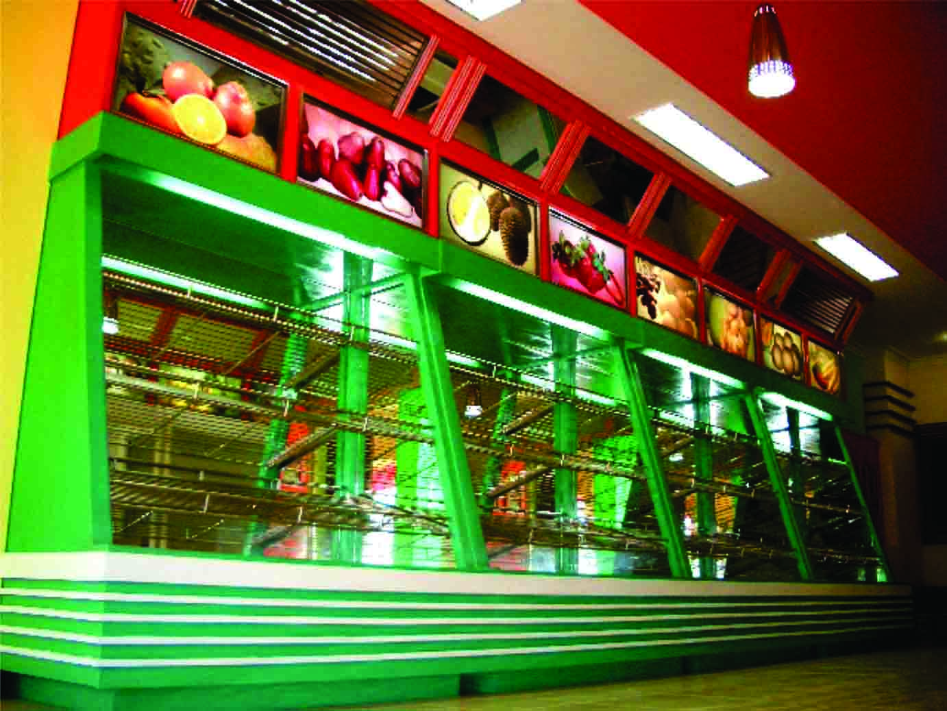 “Fresh and green”, itulah konsep yang coba dihadirkan ke dalam interior bangunan. Sesuai dengan fungsi dan representasi bangunan yang merupakan toko yang menjual sayur dan buah-buahan.